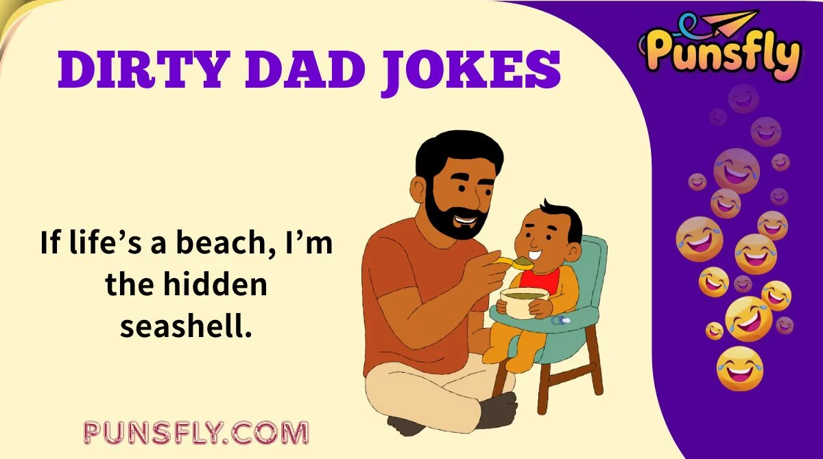 A dirty dad joke is a mild joke with playful innuendo, meant to tease the line between cheeky and silly — not crude or explicit.